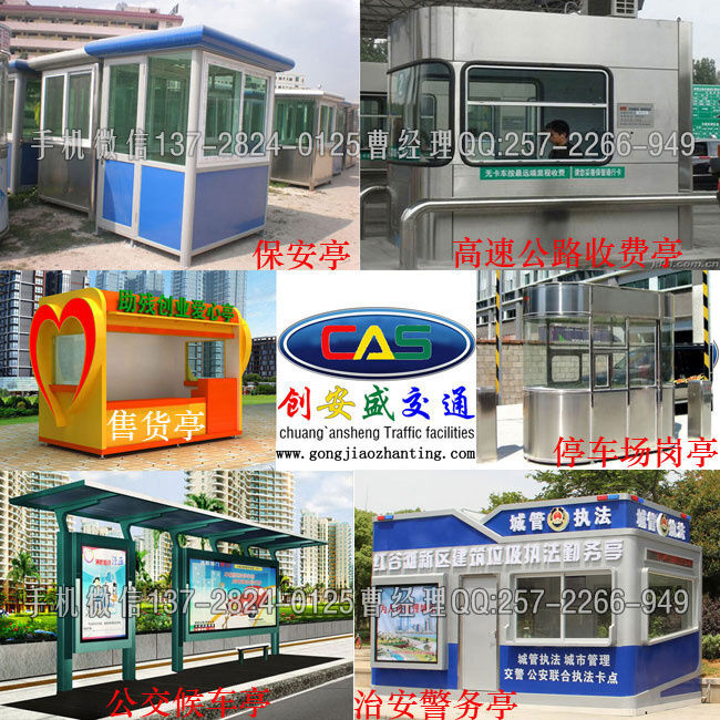 生產(chǎn)公交候車亭,崗?fù)?保安亭,高速公路收費(fèi)亭,治安警務(wù)亭,售貨亭,手動欄桿機(jī),報刊亭,公交站臺,交通安全勸導(dǎo)站,移動廁所,義工亭定做熱線137-2824-0125(微信同號)曹經(jīng)理QQ:257-2266-949急單請加撥132-6881-4669東莞創(chuàng)安盛交通溫馨提示:本產(chǎn)品屬于非標(biāo)定做產(chǎn)品,價格依據(jù)圖紙核算,如需準(zhǔn)確的報價或者預(yù)算,請撥打電話直接咨詢。感謝大家的關(guān)注與合作!期待為大家?guī)砀?、更?yōu)質(zhì)的產(chǎn)品、更完善的服務(wù)!如需產(chǎn)品樣式選型,請參考工廠網(wǎng)站。溫馨提示:由于本公司所有產(chǎn)品均由規(guī)格、配置、款式計算價格,所以一律無法在線成交,準(zhǔn)確的價格請直接來電或者在線咨詢QQ。您要的“性價比高、優(yōu)質(zhì)、工期及時、全國年保、專業(yè)、周全、工藝精美”一直是我們的標(biāo)準(zhǔn)。注意:站崗?fù)榉菢?biāo)定做產(chǎn)品,在線無法訂購,需要與廠家溝通好“款式,規(guī)格、配置、運(yùn)輸”等等方能下單。請勿直接拍。感謝關(guān)注,合作,謝謝!