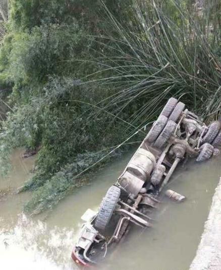 混凝土攪拌車(chē)栽入河中