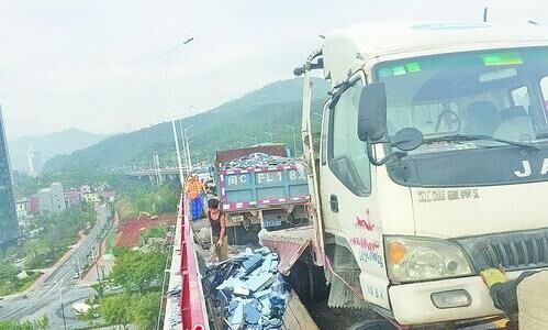 昨日上午9點(diǎn)多,記者趕到海滄大橋上的事故現(xiàn)場,現(xiàn)場仍在處理,占用了主橋面其中一個車道,形成道路瓶頸。該事故直接對海滄轄區(qū)交通造成影響,上大橋的多條主干道出現(xiàn)擁堵,許多進(jìn)島車輛開了一個多小時(shí)還沒能上海滄大橋。
