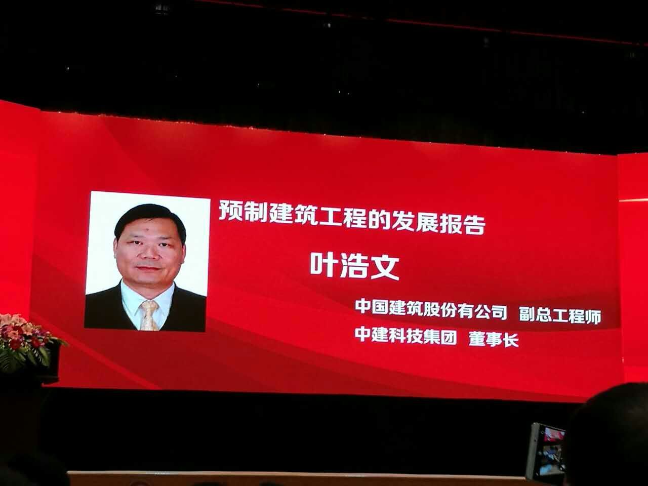 中國(guó)建筑股份有限公司副總工程師兼中建科技董事長(zhǎng)葉浩文做了《裝配式建筑三個(gè)一體化的發(fā)展路徑》報(bào)告