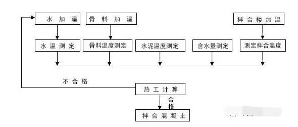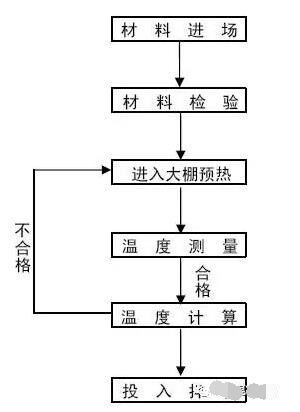 5.3根據(jù)計(jì)算結(jié)果進(jìn)行判定,若計(jì)算結(jié)果表明拌和后的混凝土溫度復(fù)核驗(yàn)標(biāo)要求,那么可立刻進(jìn)行混凝土拌和,若計(jì)算結(jié)果表明拌和后的溫度不能達(dá)到驗(yàn)標(biāo)要求,通過(guò)水加溫等手段提高各原材料溫度,重新進(jìn)入下一道工序。