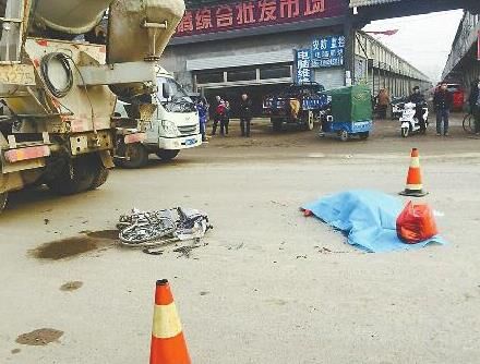 老人的遺體被藍(lán)色塑料布蓋著,一邊還有一個(gè)紅色塑料袋,里面放著老人剛從集市買的棉衣和棉褲,事發(fā)現(xiàn)場(chǎng)附近立著兩個(gè)警示栓,攪拌車停在遺體旁邊,司機(jī)在車內(nèi)。此時(shí),在不遠(yuǎn)處集市上賣水果的,老人的小兒子已經(jīng)趕到現(xiàn)場(chǎng),他情緒悲痛,正在配合民警做調(diào)查。