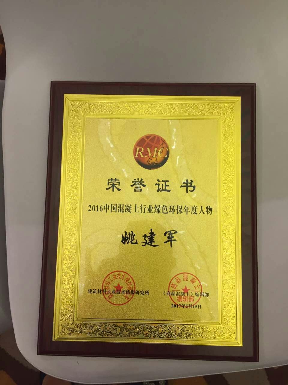 作為中國(guó)工程機(jī)械工業(yè)協(xié)會(huì)混凝土機(jī)械分會(huì)會(huì)員的百濾得機(jī)械制造有限公司參加了此次盛會(huì),公司總經(jīng)理姚建軍獲得2016中國(guó)混凝土行業(yè)綠色環(huán)保年度人物證書(shū)。