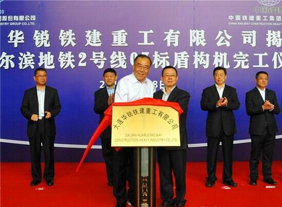 5月8日,中國制造業(yè)兩個“巨頭”的雙手緊緊握在了一起,他們分別是鐵建重工董事長劉飛香、大連重工董事長叢紅。兩位董事長共同出席在大連重工·起重集團泉水研制基地舉行的“大連華銳鐵建重工有限公司揭牌暨哈爾濱地鐵2號線7標盾構(gòu)機完工儀式”,并高興地一起為“大連華銳鐵建重工有限公司”揭牌。