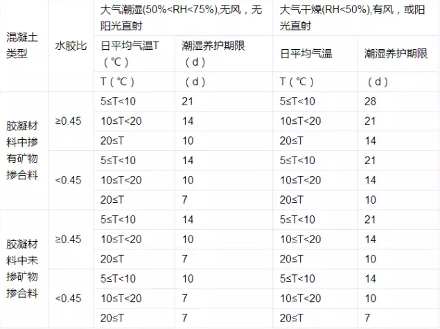 不同混凝土潮濕養(yǎng)護(hù)的最低期限