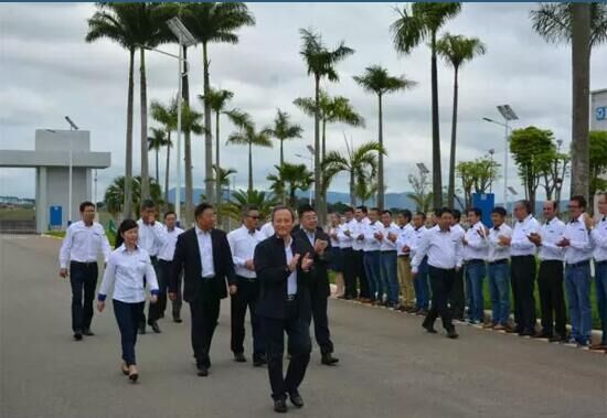 巴西時(shí)間2015年5月31日中國(guó)駐巴西大使李金章、駐巴西使館武官許有明、公使銜經(jīng)濟(jì)商務(wù)參贊夏曉玲等一行視察了徐工巴西制造基地。李大使感慨地說:“我很震撼!徐工是我見過巴西當(dāng)?shù)匾?guī)模最大的中國(guó)制造企業(yè),我為在巴西土地上能有一個(gè)投資規(guī)模這么大,規(guī)劃建設(shè)這么好,而且非?,F(xiàn)代化的中國(guó)制造工廠而感到自豪,特別是徐工是國(guó)企是共和國(guó)的長(zhǎng)子,是民族工業(yè)的脊梁,是中國(guó)制造走出去的先鋒代表,在巴西扎根的各項(xiàng)措施這么到位,很好地代表了中國(guó)形象?!?