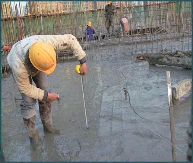 3、超平:拿水準(zhǔn)儀抄平,一般抄五零線,標(biāo)高一定要計(jì)算準(zhǔn)確,工人依據(jù)五零線來找平,打出來的混凝土才有平整度。