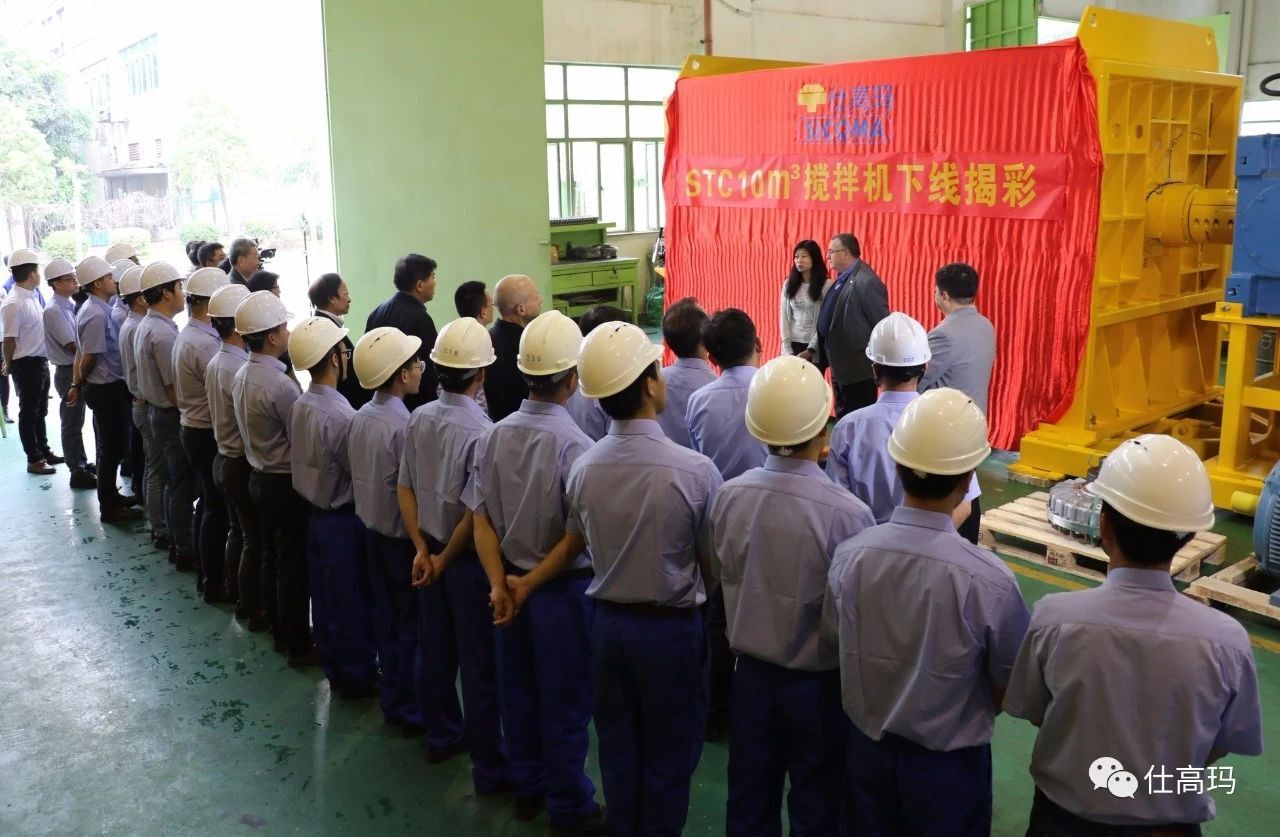 2018年4月18日,珠海仕高瑪公司10立方攪拌機(jī)下線揭彩儀式暨攪拌技術(shù)研討會(huì)在珠海仕高瑪公司舉行,中國(guó)工程機(jī)械協(xié)會(huì)混凝土機(jī)械分會(huì)符忠軒會(huì)長(zhǎng)、長(zhǎng)安大學(xué)馮忠緒教授、趙利軍博士、廣東長(zhǎng)大公路工程公司楊東來(lái)總工程師、河南萬(wàn)里路橋李冠峰總工程師、許昌德通特種混凝土公司孟超總經(jīng)理等領(lǐng)導(dǎo)、專家和嘉賓應(yīng)邀出席儀式和研討會(huì),珠海仕高瑪公司股東黃志輝先生、意大利SICOMA公司董事長(zhǎng)Mr. Galletti、總工程師Marco、珠海仕高瑪公司總經(jīng)理郗俊峰先生、財(cái)務(wù)總監(jiān)唐志敏女士及公司技術(shù)研發(fā)團(tuán)隊(duì)、生產(chǎn)團(tuán)隊(duì)、銷售團(tuán)隊(duì)、售后團(tuán)隊(duì)參加本次活動(dòng)。