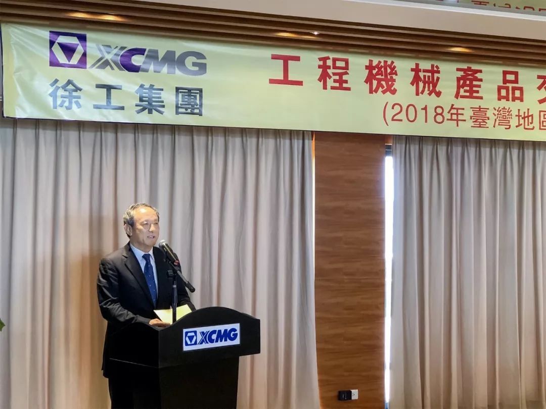 王民董事長先生在現場發(fā)表了熱情洋溢的講話。他回顧了徐工集團在臺灣市場的發(fā)展和建設歷程,并表示,徐工將按照“技術領先、用不毀”行業(yè)金標準和高端、高附加值、高可靠性、大噸位“三高一大”的產品戰(zhàn)略,為臺灣的客戶朋友們提供先進的、質量完美的產品,為寶島臺灣的建設發(fā)揮光和熱。