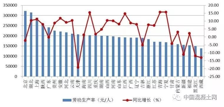 圖6 2018年上半年各地區(qū)按建筑業(yè)總產值計算的勞動生產率及增速