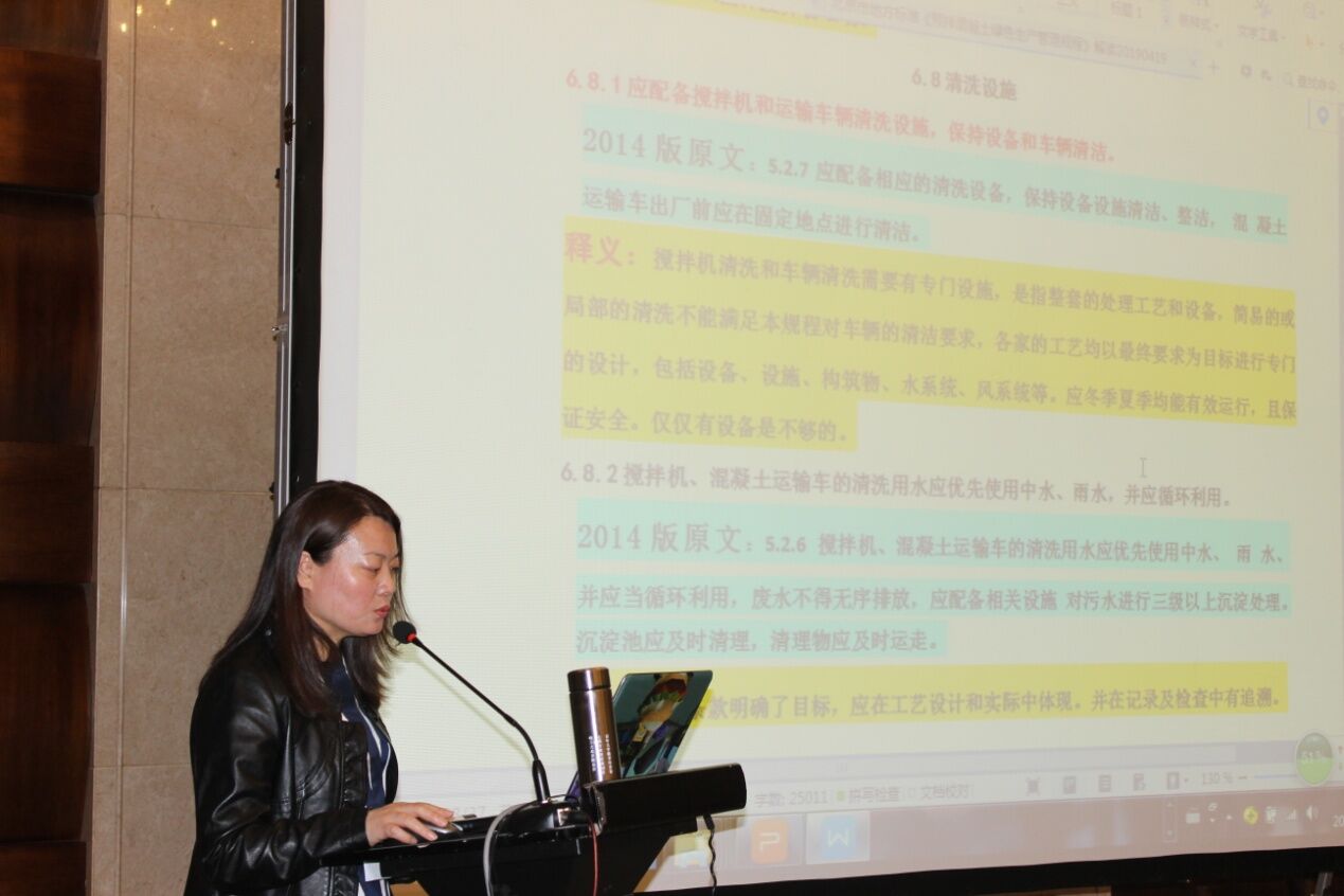 北京市砼協(xié)會(huì)秘書(shū)長(zhǎng)齊文麗女士對(duì)《預(yù)拌混凝土綠色生產(chǎn)管理規(guī)程》及北京市“治超治限”政策解讀作了詳盡的講解。尤其是切合本次攪拌運(yùn)輸車研討的主題,重點(diǎn)闡述了攪拌車在政策當(dāng)中超限問(wèn)題、攪拌車清潔問(wèn)題,并對(duì)全封閉工作作出解讀。政策規(guī)定是詳盡和嚴(yán)謹(jǐn)?shù)?,處罰力度也是非常之大,從首都北京的政策解讀中讓與會(huì)者感受到了行業(yè)發(fā)展的方向和設(shè)備生產(chǎn)單位制造改善的方向;