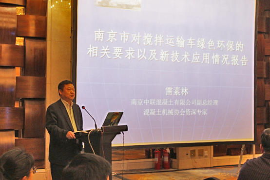 南京中聯(lián)混凝土有限公司副總經(jīng)理、混凝土機(jī)械協(xié)會(huì)資深專家雷素林先生作了《南京市對(duì)攪拌運(yùn)輸車綠色環(huán)保的相關(guān)要求以及新技術(shù)應(yīng)用情況報(bào)告》的主題演講,從南京環(huán)保和攪拌車治理過(guò)程中所遇到的問(wèn)題提出了攪拌車在綠色環(huán)保和新技術(shù)應(yīng)用方面的以下幾點(diǎn)建議: