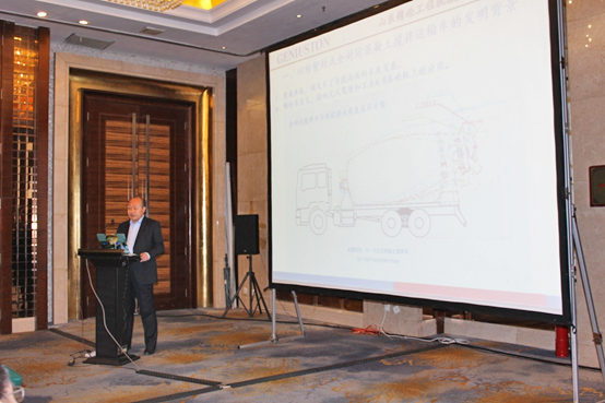 意大利普曼普(PMP)董事長(zhǎng)Luigino POZZO先生作了《全球攪拌運(yùn)輸車的發(fā)展趨勢(shì)》的主題報(bào)告,Luigino POZZO先生詳細(xì)闡述了歐洲攪拌車在以下四方面的技術(shù)發(fā)展趨勢(shì)。一是安全性(Safety),二是對(duì)環(huán)境的影響(Environmental impact),三是攪拌(混凝土)質(zhì)量(Quality of mixing),四是操作員舒適性(Ergonomics/Operatorcomfort),并提出歐洲大攪拌運(yùn)輸車(超過(guò)10立方)是意大利和北歐(荷蘭)市場(chǎng)的主流型號(hào),并已證實(shí)可以提高混凝土運(yùn)輸?shù)男?,更是用詳?xì)具體的對(duì)比數(shù)據(jù)闡述了這一結(jié)論。Luigino POZZO先生對(duì)國(guó)外攪拌運(yùn)輸車的發(fā)展趨勢(shì)的闡述給這次研討會(huì)提供了寶貴的意見(jiàn)。
