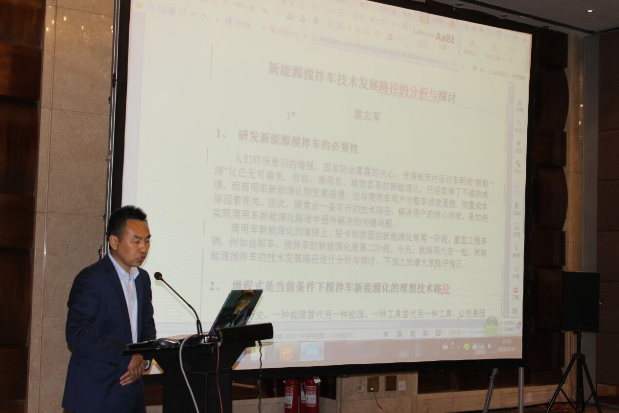 安徽星馬專用汽車有限公司總經(jīng)理助理裴志軍先生從國(guó)內(nèi)外攪拌車的發(fā)展現(xiàn)狀出發(fā),作了“增程式是當(dāng)前條件下攪拌車新能源化的理想技術(shù)路徑”和“增程式在攪拌車上應(yīng)用前景展望”的《新能源攪拌車技術(shù)發(fā)展路徑的分析與探討》報(bào)告。