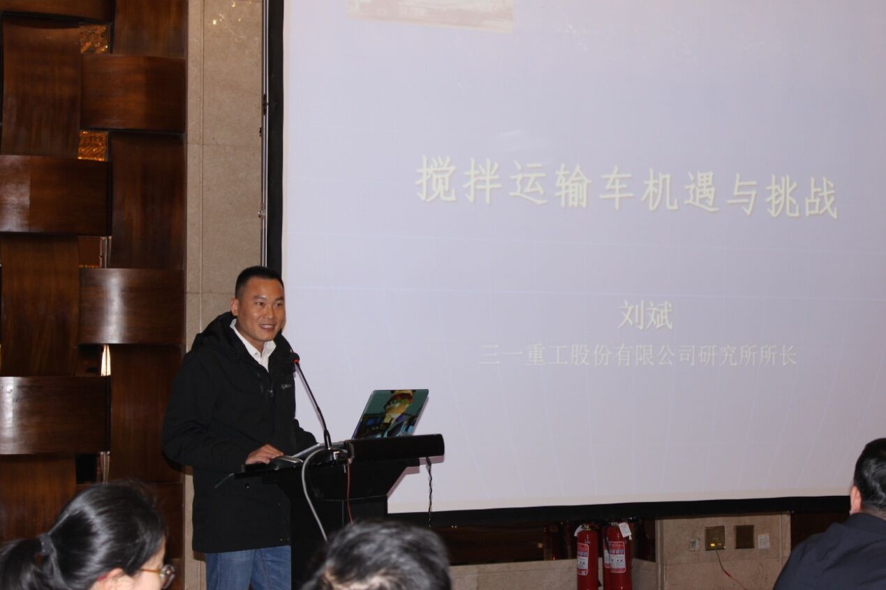 三一重工股份有限公司研究所所長(zhǎng)劉斌先生作了《攪拌運(yùn)輸車機(jī)遇與挑戰(zhàn)》的主題報(bào)告,從攪拌車面臨的五大機(jī)遇和三大挑戰(zhàn)分析,提出攪拌車的研發(fā)與生產(chǎn)要回歸本質(zhì),即運(yùn)輸和質(zhì)量,保證安全運(yùn)輸、環(huán)保運(yùn)輸、合標(biāo)運(yùn)輸、保證運(yùn)輸?shù)幕炷临|(zhì)量。