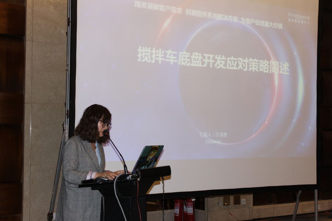 北汽福田汽車股份有限公司技術(shù)部部長(zhǎng)許美星女士作了《適應(yīng)攪拌車新法規(guī)之底盤設(shè)計(jì)》的主題報(bào)告,結(jié)合攪拌車的發(fā)展趨勢(shì)介紹了重卡發(fā)展的總體趨勢(shì)以及政策法規(guī)制定進(jìn)程,有很多參考的價(jià)值和意義。同時(shí)許部長(zhǎng)還介紹了認(rèn)證體系中的主要應(yīng)對(duì)項(xiàng)以及BFDA產(chǎn)品開(kāi)發(fā)應(yīng)對(duì)策略,讓與會(huì)者對(duì)于配套的底盤及政策有了更多了解。