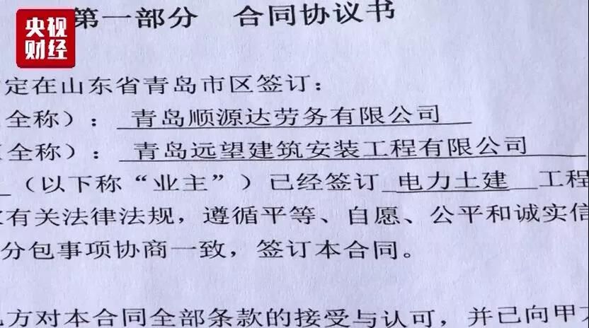 劉飛云介紹,該標(biāo)段總承包方為中國葛洲壩集團(tuán)電力有限責(zé)任公司,總承包方通過青島永利捷電力工程有限公司、青島順源達(dá)勞務(wù)有限公司等層層分包,最終由他所在的青島遠(yuǎn)望建筑安裝工程有限公司實(shí)際施工。