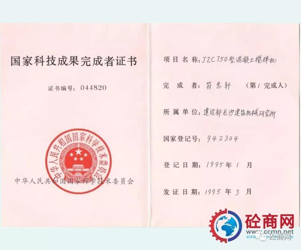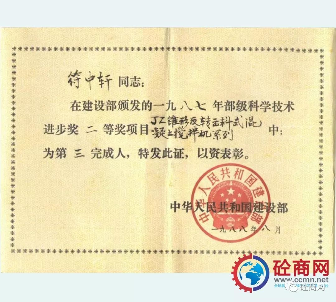 通過全行業(yè)的不懈努力,改革統(tǒng)型機(jī)型的結(jié)構(gòu)與技術(shù),新型混凝土攪拌機(jī)取得了突飛猛進(jìn)的發(fā)展,并在全國推廣使用,獲得用戶廣泛的認(rèn)可與好評(píng)。長沙建機(jī)院負(fù)責(zé)的、本人作為主要參與設(shè)計(jì)者的“JZ錐形反轉(zhuǎn)出料攪拌機(jī)系列”獲建設(shè)部1987年科技進(jìn)步二等獎(jiǎng);代表長沙建機(jī)所與方圓集團(tuán)合作開發(fā)的JZC750混凝土攪拌機(jī),獲得國家科技成果證書。