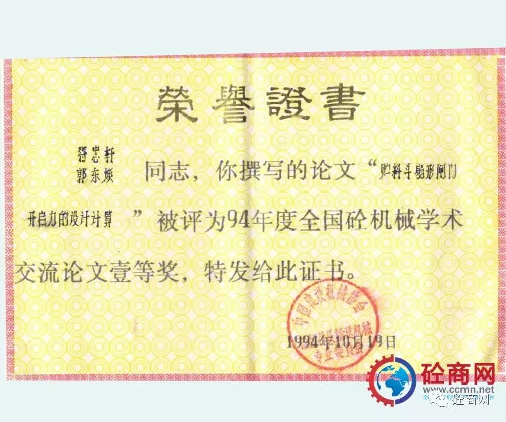 行業(yè)引領(lǐng)發(fā)展,研發(fā)人員積極性高。本人作為科研人員先后發(fā)表了《儲(chǔ)料斗扇形閘門開啟力的設(shè)計(jì)計(jì)算》被評(píng)為1994年度全國砼機(jī)械學(xué)術(shù)交流論文一等獎(jiǎng),本文引入“水力學(xué)半徑”的概念,較為詳盡的介紹了目前在混凝土攪拌站、配料站上大量采用的扇形閘門料斗的開啟力計(jì)算,為配料機(jī)構(gòu)的設(shè)計(jì)選型提供了理論依據(jù);發(fā)表的《談裝載機(jī)上料形式混凝土配料(攪拌站)的發(fā)展》被評(píng)為1992年度全國砼機(jī)械學(xué)術(shù)交流會(huì)優(yōu)秀論文獎(jiǎng),本文針對當(dāng)時(shí)混凝土攪拌站上料型式較多:懸臂拉鏟、鏈斗機(jī)及裝載機(jī)上料型式等,分析了國內(nèi)發(fā)展的實(shí)際,提出了裝載機(jī)上料形式為未來發(fā)展方向;1997年發(fā)表在《建設(shè)機(jī)械技術(shù)與管理》雜志第五期的《混凝土泵攪拌葉片的合理布置》,以全球量大面廣的S閥為例,分析了幾種葉片布局形式對混凝土泵吸料性的影響,設(shè)計(jì)了一種正泵送料、反泵扒料合理的攪拌葉片布局形式。