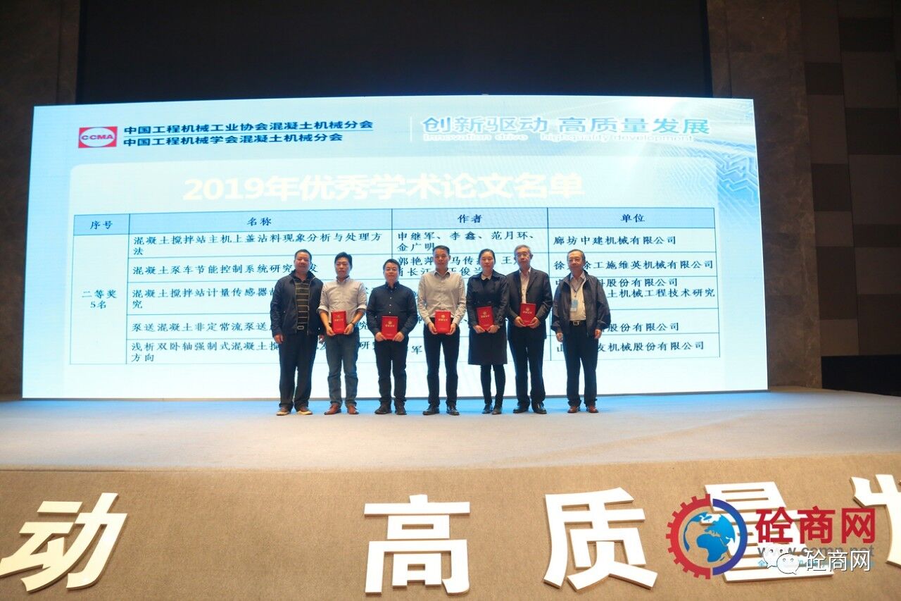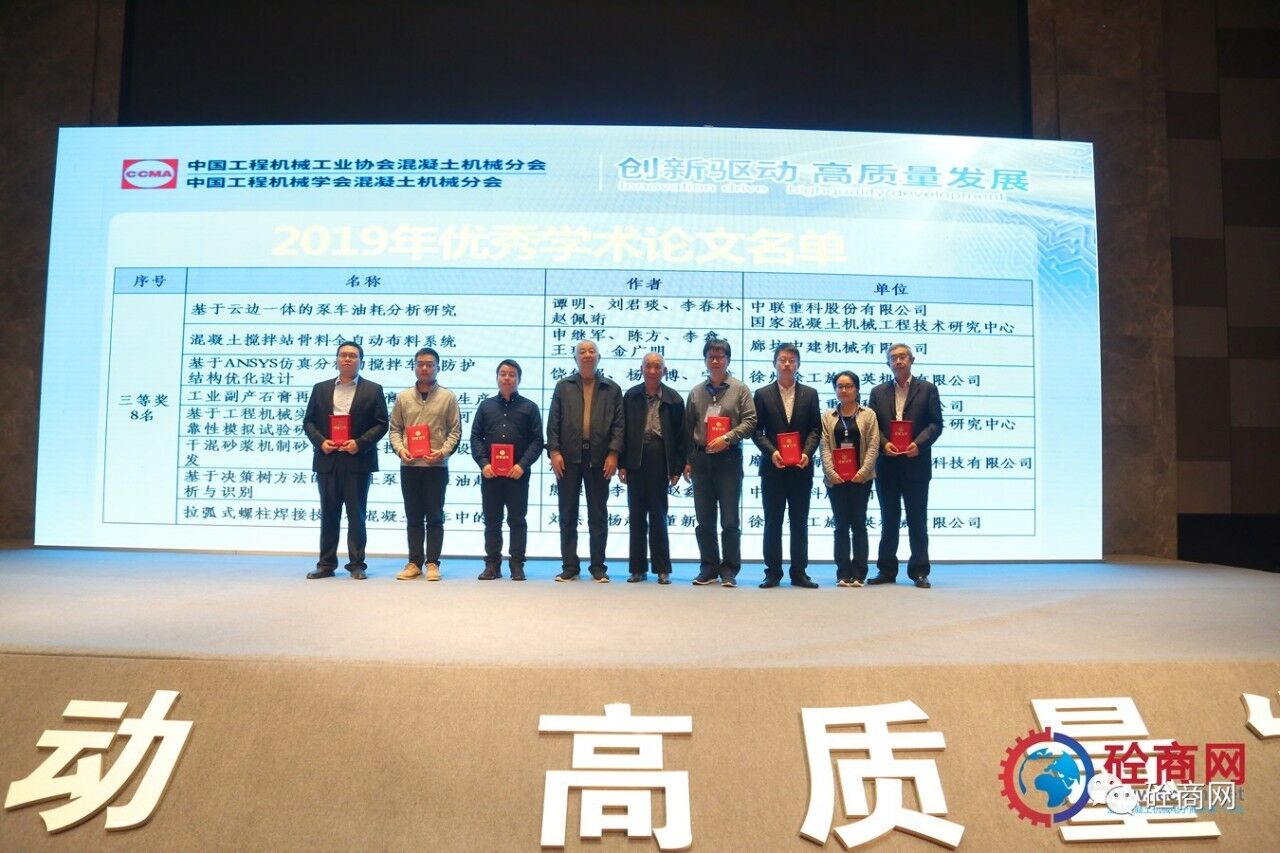 2019年的論文征集評(píng)選結(jié)果已經(jīng)揭曉,共收到參評(píng)論文26篇,其中會(huì)長單位中聯(lián)重科、國家混凝土機(jī)械技術(shù)研究中心《基于離散單元法立軸沖擊破碎機(jī)成砂率研究》等三篇論文獲得一等獎(jiǎng),副會(huì)長單位廊坊中建機(jī)械有限公司《混凝土攪拌站主機(jī)上蓋沾料現(xiàn)象分析與處理方法》共5篇論文獲得二等獎(jiǎng)、中聯(lián)重科、國家混凝土機(jī)械技術(shù)研究中心《基于云邊一體的泵車油耗分析研究》等8篇論文獲得三等獎(jiǎng),其余10篇均獲優(yōu)秀論文獎(jiǎng)。在此我提議:讓我們以熱烈掌聲向中聯(lián)重科、徐工施維英、廊坊中建機(jī)械有限公司三家優(yōu)秀組織單位和論文獲獎(jiǎng)人員表示最熱烈的祝賀和最誠摯的感謝——感謝大家為中國混凝土機(jī)械行業(yè)的技術(shù)進(jìn)步所做出的貢獻(xiàn)。