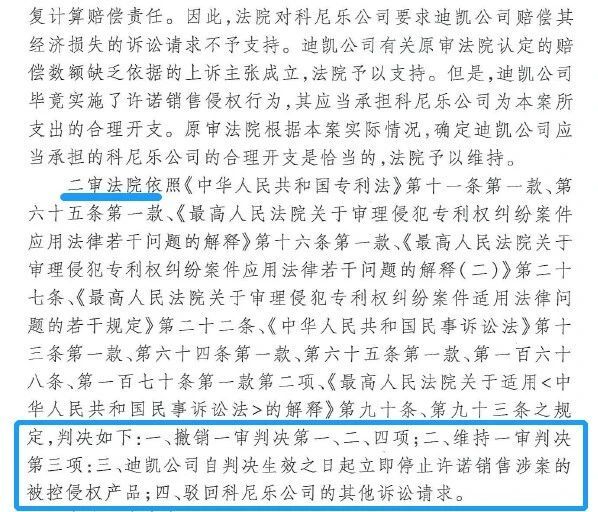 高院認為,迪凱公司“從事了被訴侵權產品的制造、銷售和許諾銷售行為”。