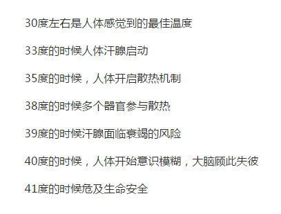 ②全身性高溫反應(yīng):人在高溫環(huán)境中停留時(shí)間較長,體溫會漸漸升高,當(dāng)局部體溫高達(dá)38℃,便會產(chǎn)生不舒適反應(yīng)。人的深部體溫通常以肛溫為代表。人在休息時(shí)主訴可耐受的肛溫38.4~38.6℃,在體力勞動時(shí)為38.5~38.8℃。高溫極端不舒適反應(yīng)的肛溫臨界值為39.1~39.4℃。肛溫超過這一限度,汗率和皮膚熱傳導(dǎo)量都不再上升,表明人體對高溫的適應(yīng)能力已達(dá)到極限。如果溫度再繼續(xù)升高,即會出現(xiàn)生理危象。全身性高溫的主要癥狀為:頭暈、頭痛、胸悶、心悸、視覺障礙(眼花)、惡心、嘔吐、癲癇樣抽搐等。溫度過高還會引起虛脫、肢體強(qiáng)直、大小便失禁、暈厥、燒傷、昏迷,直至死亡。