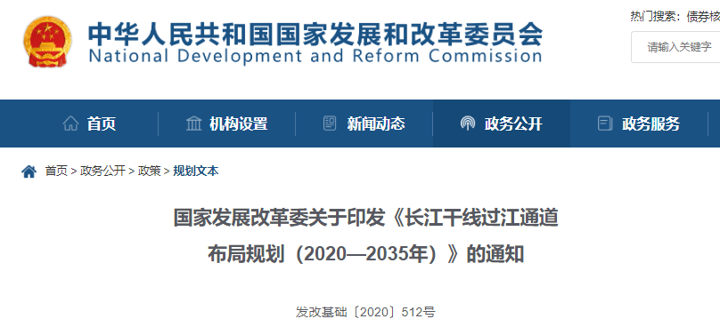 關(guān)于印發(fā)《長江干線過江通道布局規(guī)劃(2020—2035年)》的通知