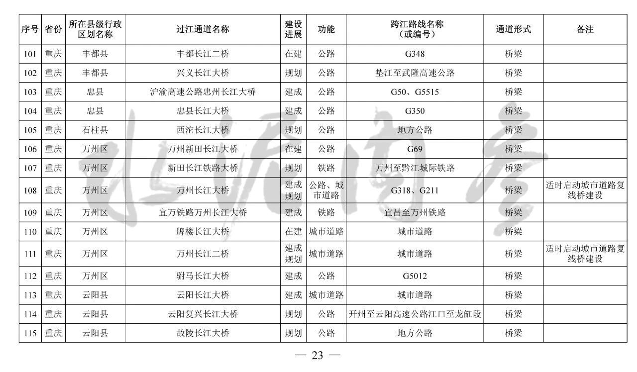 ??四、本《規(guī)劃》主要布局橫跨長江干線主要航道、具有交通功能的過江通道項(xiàng)目,對于連接洲島與沿岸、洲島之間的通道項(xiàng)目和不具備交通功能的跨江、沿江建筑物,由省級發(fā)展改革委統(tǒng)籌布局編制相關(guān)規(guī)劃報送我委銜接后組織實(shí)施。