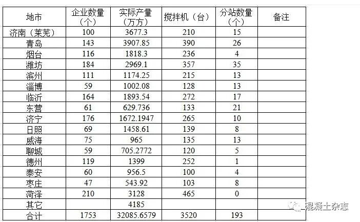 山東省2019年預(yù)拌混凝土生產(chǎn)企業(yè)及產(chǎn)量統(tǒng)計