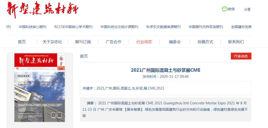 在此,小編就不一一列舉了,再次衷心感謝各大媒體對(duì)2021廣州國際混凝土及砂漿展的大力宣傳,為各地的混凝土、砂漿產(chǎn)品、設(shè)備代理商、經(jīng)銷商、承包商、進(jìn)出口貿(mào)易商等業(yè)內(nèi)人士等提供全面了解展會(huì)的平臺(tái)!