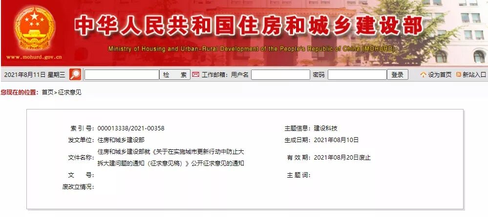 為深入貫徹黨的十九屆五中全會精神和“十四五”規(guī)劃綱要部署要求,指導各地積極穩(wěn)妥實施城市更新行動,防止沿用過度房地產(chǎn)化的開發(fā)建設(shè)方式,大拆大建,急功近利等問題,我部研究起草了《關(guān)于在實施城市更新行動中防止大拆大建問題的通知》,現(xiàn)向社會公開征求意見。公眾可在2021年8月20日前,通過以下途徑和方式提出意見: