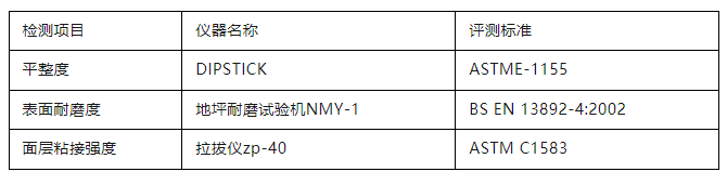 參評項目包括混凝土面層地坪、水泥砂漿面層地坪、整體樹脂地坪系統(tǒng)三大類(下分13種細(xì)分地坪)?!癢OCA 地坪獎-亞洲賽區(qū)”(WOCA AWARDS)執(zhí)行國際先進(jìn)的檢測檢驗標(biāo)準(zhǔn),對候選項目進(jìn)行現(xiàn)場性能檢測,依據(jù)三個維度——平整度(FF/FL Testing)、表面耐磨度(BCA Abrasion Testing)、面層粘接強(qiáng)度(Pull-off Adhesion Testing)的測評數(shù)值加權(quán)系數(shù)后得出最終分?jǐn)?shù)進(jìn)行評選。