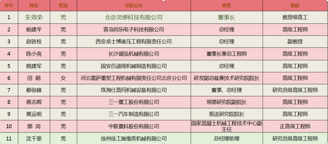 經(jīng)理事會表決及總會批準(zhǔn),2021年聘請中國工程機(jī)械工業(yè)協(xié)會專家委員會(混凝土機(jī)械行業(yè))委員11人