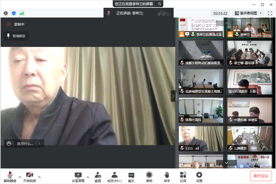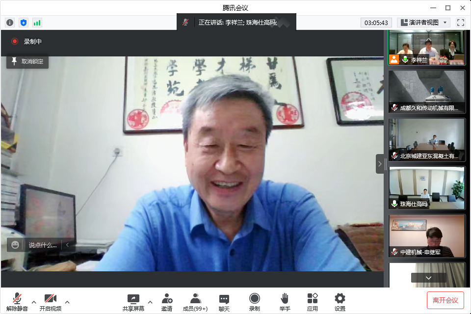 混凝土機(jī)械分會的年會還得到很多行業(yè)老前輩,專家、高工、行業(yè)精英的關(guān)注和支持,在自由交流環(huán)節(jié),中國工程機(jī)械工業(yè)協(xié)會名譽(yù)會長祁俊祁會長也發(fā)言祝賀,首先祝賀大會線上會議開的非常成功,他呼吁現(xiàn)在中國混凝土機(jī)械在全世界已占主導(dǎo)地位,站在領(lǐng)跑位置,肯定了行業(yè)的領(lǐng)先性,但由于各種因素的疊加,行業(yè)也到了最困難的時候,協(xié)會要增加上下游的互動,爭取支持,抱團(tuán)取暖,希望混凝土機(jī)械在工程機(jī)械整個領(lǐng)域大家共同進(jìn)步,相互幫扶渡過難關(guān)。