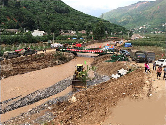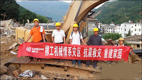 柳工機(jī)械在云南魯?shù)橹貫?zāi)區(qū)開(kāi)挖生命通道