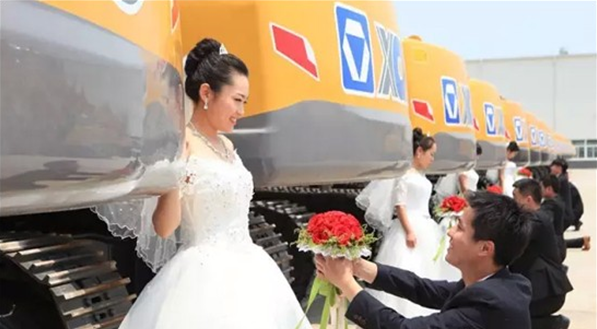 史上最大的婚車,史上最酷的愛情長廊,史上最闊綽的求婚,史上最霸氣的婚照---當愛情綻放在徐工,聽說婚紗和挖掘機更配哦。