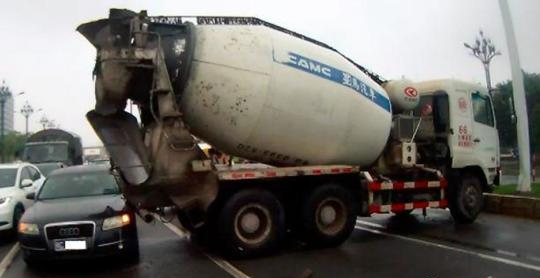 奧迪司機(jī)王某說:“當(dāng)時事故發(fā)生太突然,幸虧車體夠結(jié)實,車上三人都沒事。只是車子被撞后與攪拌車連在一起,我報警后就讓對方跟我一起等交警來處理,誰知,我在車?yán)锏鹊臅r候,他就把攪拌車啟動起來,我擔(dān)心他開車逃跑,就讓他趕緊熄火,誰知他硬說沒辦法,我一著急就打了他一耳光。”
