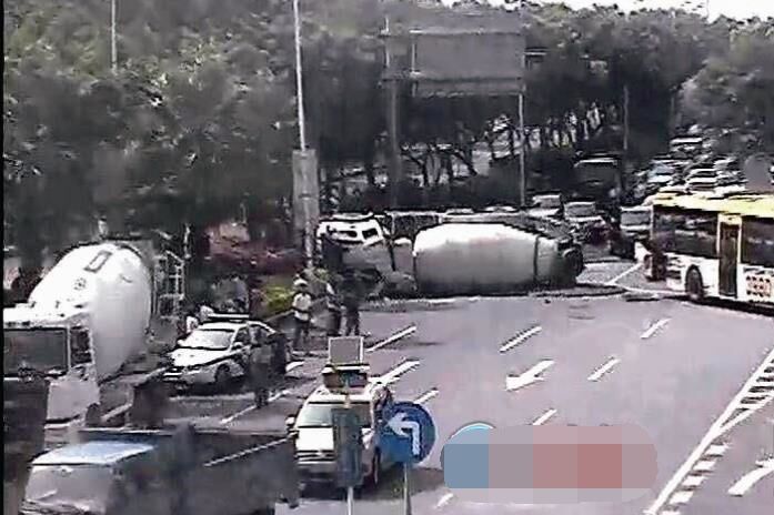 【新聞】攪拌車追尾公交,整車側(cè)翻