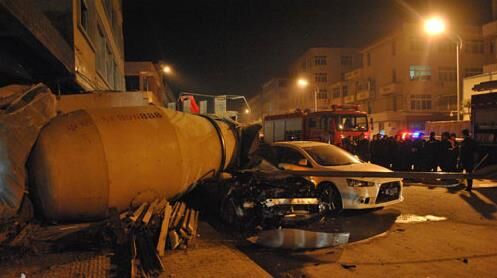 7月27日晚20時(shí)40分許,一輛紅色科魯茲小型轎車在槐蔭區(qū)濱河南路由西向東行駛,車上有兩名小伙子,當(dāng)車開到臘山河西路路口時(shí)突然迎面撞上了一輛重型特殊結(jié)構(gòu)水泥攪拌車,這輛攪拌車正沿臘山河西路由北向南行駛,車的右側(cè)中部將小轎車彈飛。巨大的撞擊力造成小轎車司機(jī)當(dāng)場(chǎng)死亡,乘車人受重傷。