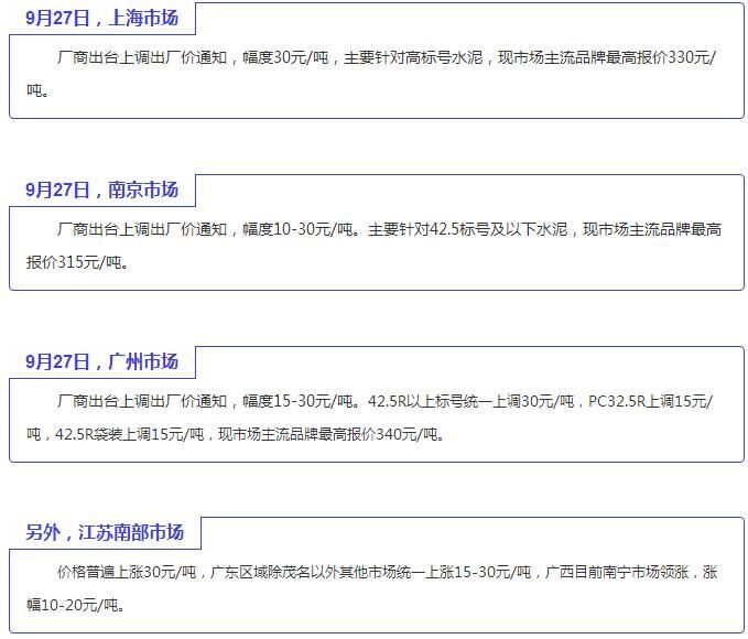 水泥方面,東北地區(qū)即將進入往年慣例長時間的停窯限產階段,避免產能過剩,穩(wěn)定現(xiàn)有價格,因此短期內價格波動的可能性不大。華北地區(qū)行情持續(xù)升溫,水泥銷售情況良好,再加上停窯措施落實到位。從現(xiàn)階段市場進度來看,預計10月中上旬水泥價格進行上調。