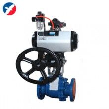 2.Q641F46氣動襯氟球閥是全電子式氣動執(zhí)行機(jī)構(gòu),采有機(jī)電一體化結(jié)構(gòu)。Q641F46氣動襯氟球閥具有機(jī)內(nèi)伺服操作和開度信號位置反饋、位置指示、手動操作等功能,功能強(qiáng)、性能可靠、連線簡單。Q641F46氣動襯氟球閥通過輸入電流信號或電壓信號,改變球芯的旋轉(zhuǎn)角度(0-90o任意角度),實(shí)現(xiàn)比例調(diào)節(jié)動作。
