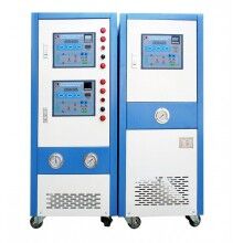 泵浦驅(qū)動(dòng)傳熱介質(zhì)(通常為水或油)從內(nèi)置加熱器中到達(dá)需要控溫的設(shè)備,再?gòu)目販卦O(shè)備回到加熱器中.控制器根據(jù)溫度傳感器測(cè)量的熱流體溫度或控溫設(shè)備內(nèi)部溫度,調(diào)節(jié)熱流體的溫度從而調(diào)節(jié)控溫設(shè)備的溫度.