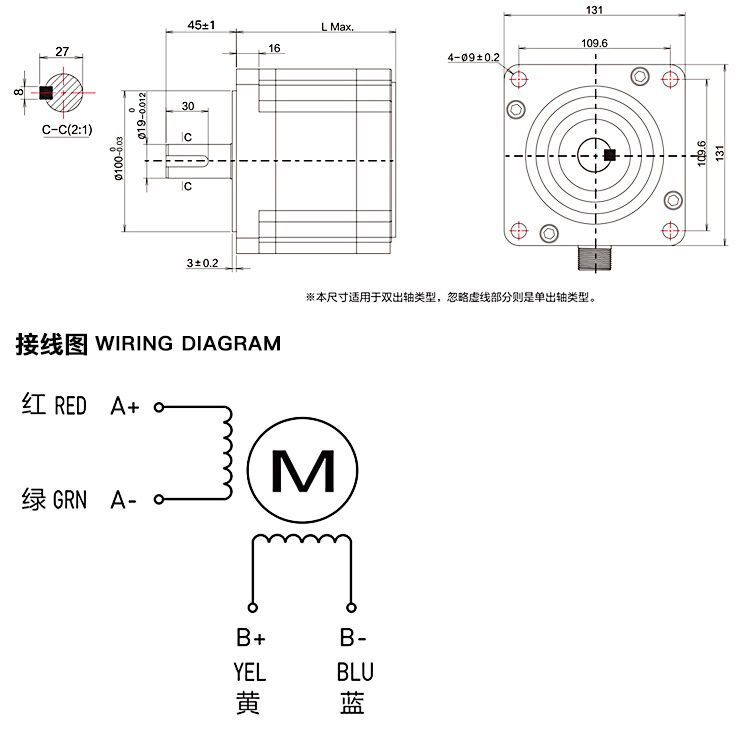 兩相1.8°混合式步進(jìn)電機(jī)130系列步進(jìn)電機(jī)