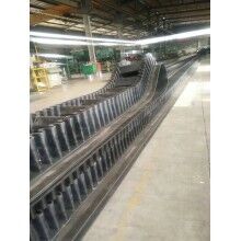 隔板:大傾角波狀擋邊輸送帶采用膠料與纖維復(fù)合材料混煉的工藝使得隔板挺性大,硬度高、增強了耐沖擊性,避免了其因受力較大而發(fā)生形變。