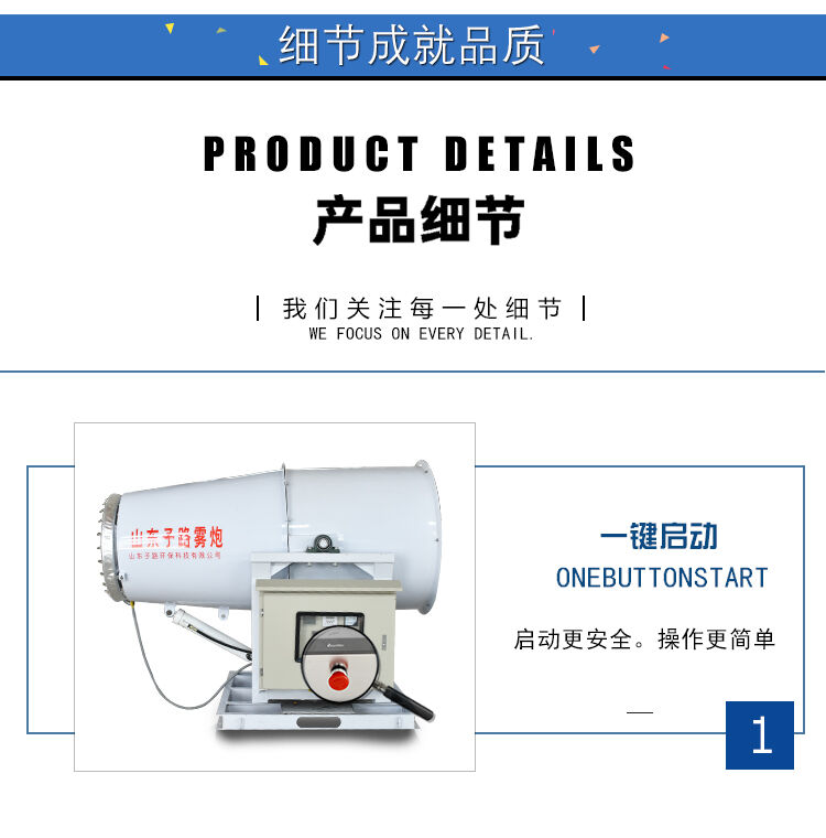 直徑相近的水霧和的粉塵顆粒黏貼,減小水表面的張力,使粉塵顆粒與水霧聚結(jié)成團,在重力作用下,然后沉降到地面。達到有效降塵的目的。霧炮機的噴水距離為30到150米,具體規(guī)格可以定制,配套水箱可選3-10噸,主要作用是噴霧抑塵,