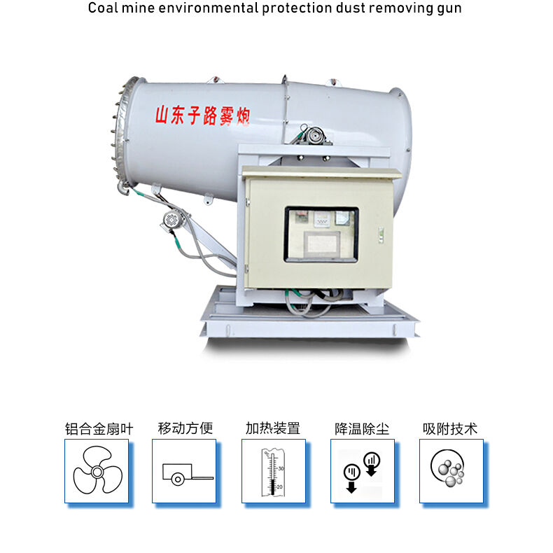 子路環(huán)保科技有限公司一款通過高壓風(fēng)機(jī)將儲存的水壓縮成灰塵大小,在利用不銹鋼噴嘴部位將水霧化吹向高空凈化空氣的一種新型環(huán)保除塵產(chǎn)品。這款產(chǎn)品名字叫高射程霧炮機(jī),