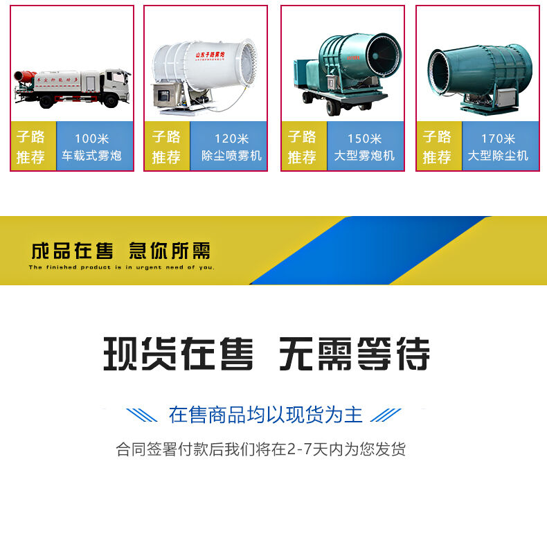根據(jù)不同的分類標(biāo)準(zhǔn),霧炮可分為:移動式霧炮機、固定式霧炮機,也有30米霧炮機、40米霧炮機等的區(qū)分,所以在使用的時候要按照需求進行選擇。固定式霧炮機需要固定在平臺上,可以使場地內(nèi)各處均能噴灑到位,起到降塵除塵的效果,