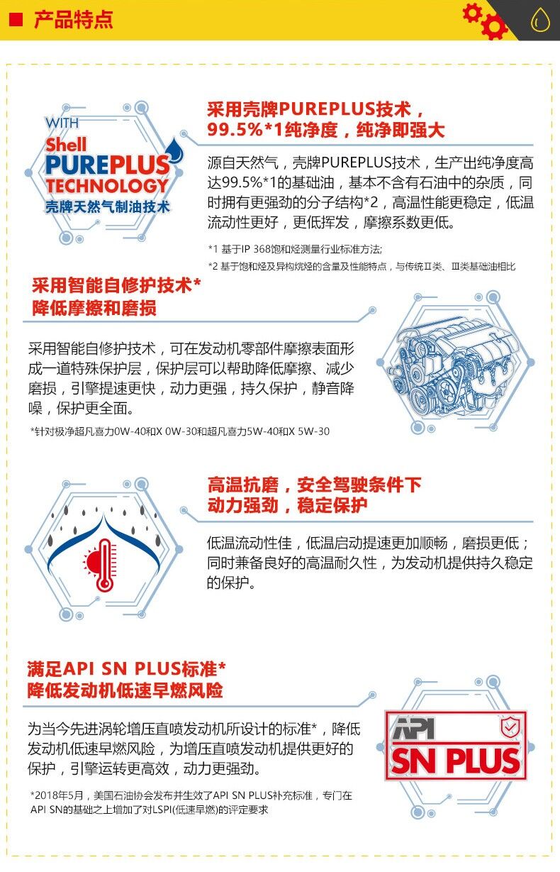 歸屬行業(yè):殼牌(Shell)新升級(jí) 金裝極凈超凡喜力天然氣全合成機(jī)油Helix Ultra 0W-40 SN PLUS級(jí) 6L組合裝