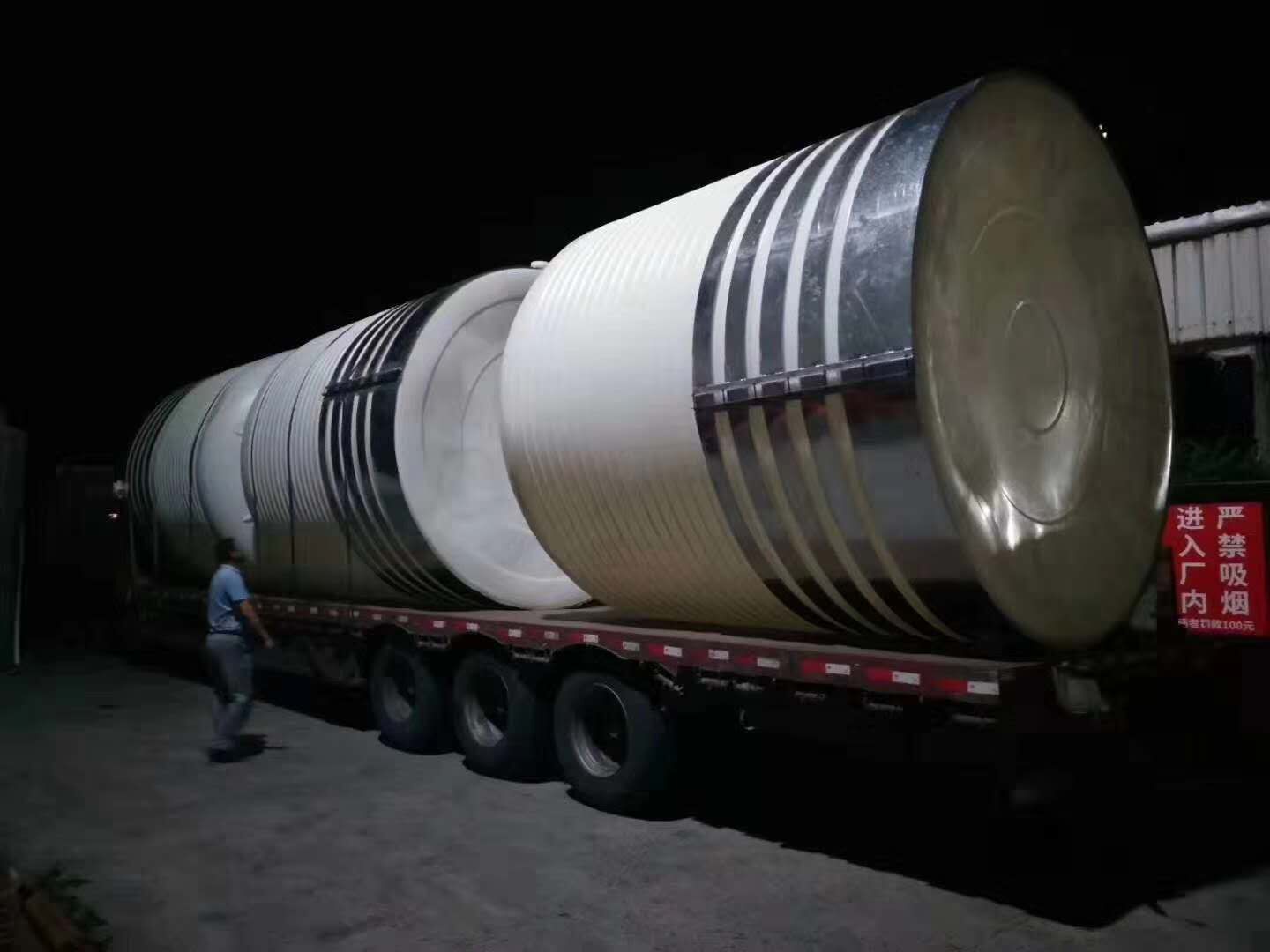 特性三:常壓產(chǎn)品,不可施于超過常壓(1個大氣壓力)以上之正壓或負(fù)壓;若需攪拌或酸堿濃度比重在1.2以上時,應(yīng)加裝補強套及加厚桶體壁厚為宜。此項特性尤其在盛裝容積超過10000L以上的桶體特需注意之。(硫酸、硝酸濃度超過28%一律使用特級產(chǎn)品并加裝補強套)