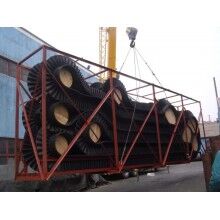 基帶:大傾角波狀擋邊輸送帶骨架材料采用滌棉浸膠帆布(EP帆布、鋼繩芯)和橫向剛性加強層;在帶體內(nèi)加入橫向剛性加強層,解決了大規(guī)格擋邊輸送帶的塌帶問題。